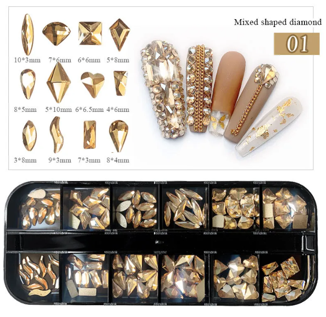 Il contient une large variété de strass holographiques, formes géométriques et effets cristal, parfaits pour des poses sophistiquées, artistiques ou extravagantes.